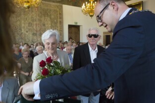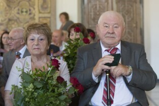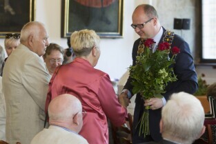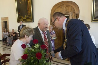 Jubileusz Par Małżeńskich - "Złote Gody", podczas których Prezydent Gdańska Paweł Adamowicz wręczył medale za długoletnie pożycie małżeńskie. Gdańsk, Ratusz Głównomiejski