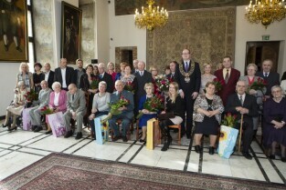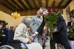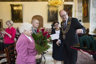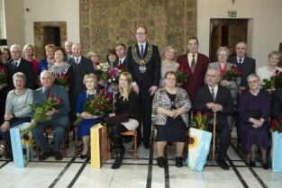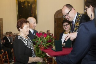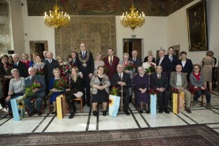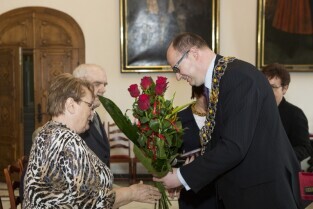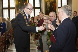 Jubileusz Par Małżeńskich - "Złote Gody", podczas których Prezydent Gdańska Paweł Adamowicz wręczył medale za długoletnie pożycie małżeńskie. Gdańsk, Ratusz Głównego Miasta