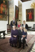 Jubileusz Par Małżeńskich - "Złote Gody", podczas których Prezydent Gdańska Paweł Adamowicz wręczył medale za długoletnie pożycie małżeńskie. Gdańsk, Ratusz Głównego Miasta. Nz. Terasa i Ryszard Adamowicz z wnuczką Teresą, z tyłu Prezydent Gdańska Paweł Adamowicz z córką Antoniną i żoną Magdaleną
