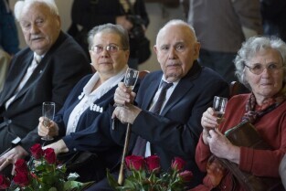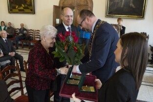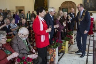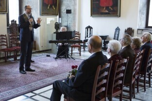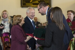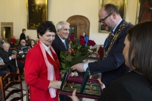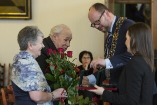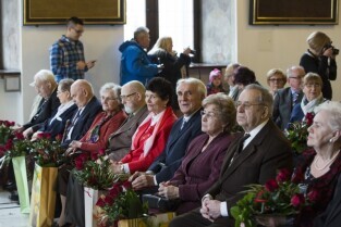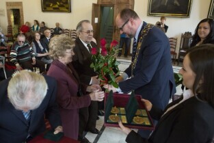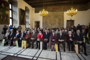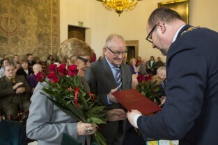 Jubileusz Par Małżeńskich - "Złote Gody", podczas których Prezydent Gdańska Paweł Adamowicz wręczył medale za długoletnie pożycie małżeńskie. Gdańsk, Ratusz Głównego Miasta