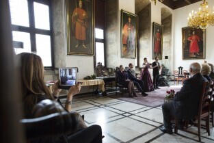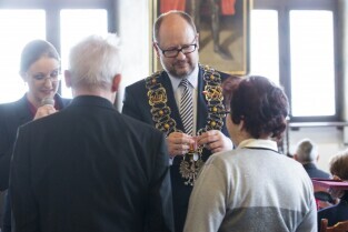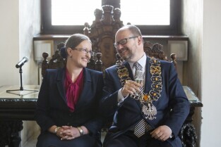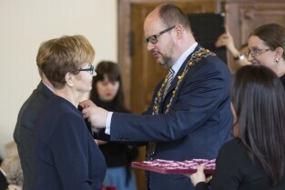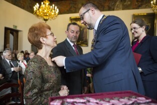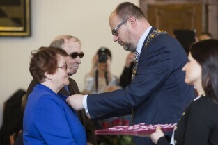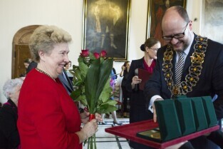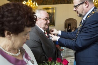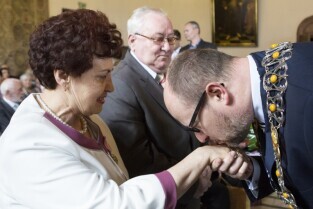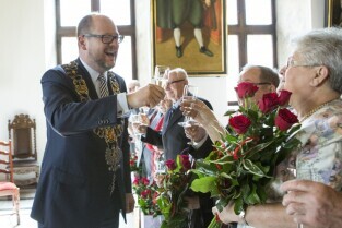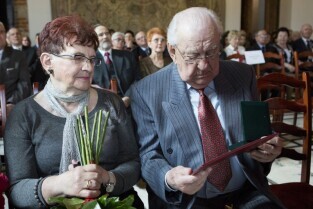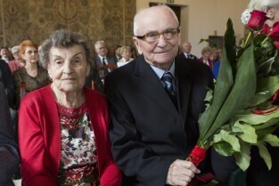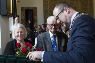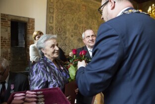 Jubileusz Par Małżeńskich - "Złote Gody", podczas których Prezydent Gdańska Paweł Adamowicz wręczył medale za długoletnie pożycie małżeńskie. Gdańsk, Ratusz Głównego Miasta
