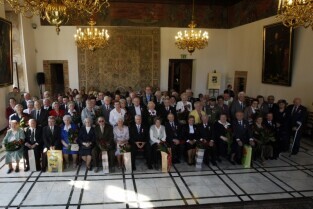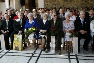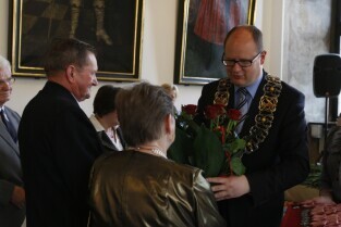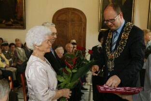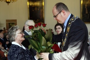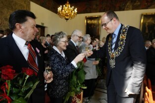 Jubileusz Par Małżeńskich - "Złote Gody", podczas których Prezydent Gdańska Paweł Adamowicz wręczył medale za 65-, 60- i 50-lecie pożycia małżeńskiego. Gdańsk, Ratusz Głównomiejski