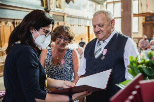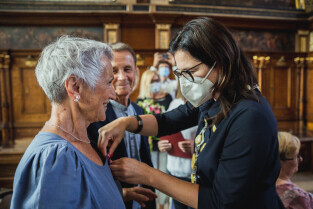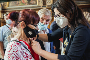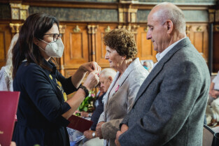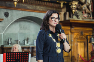 Złote Gody - jubileusz par małżeńskich. Gdańsk, Dwór Artusa. Nz. Prezydent Gdańska Aleksandra Dulkiewicz