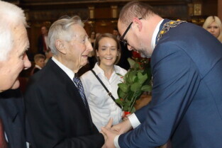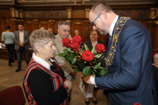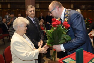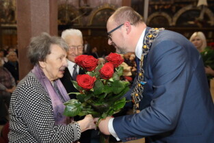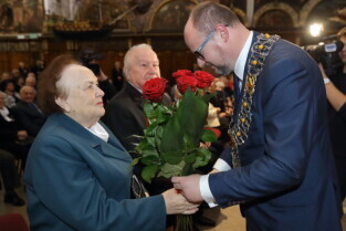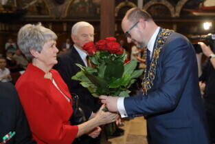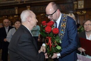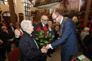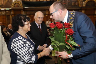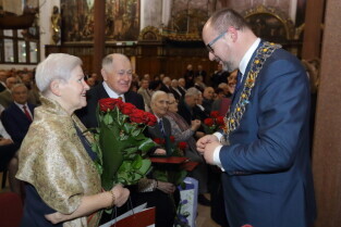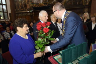 Gdańsk, Dwór Artusa. Jubileusz Par Małżeńskich - "Złote Gody", podczas których Prezydent Gdańska Paweł Adamowicz wręczył medale za długoletnie pożycie małżeńskie.