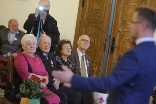 Gdańsk, Ratusz Głównego Miasta. Jubileusz Par Małżeńskich - "Złote Gody", podczas których Prezydent Gdańska Paweł Adamowicz wręczył medale za długoletnie pożycie małżeńskie.