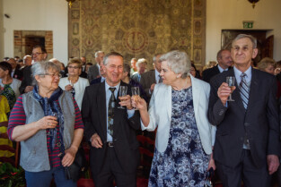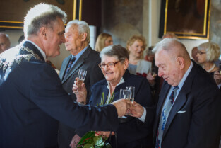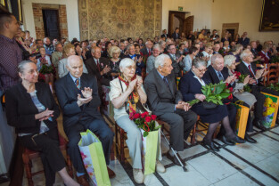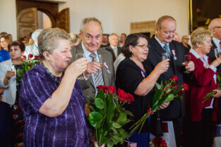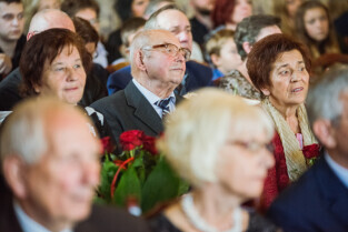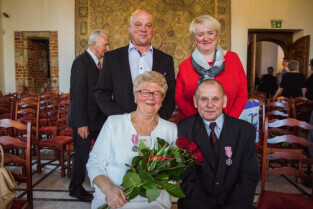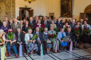 Gdańsk, Ratusz Głównego Miasta. Jubileusz Par Małżeńskich - "Złote Gody", podczas których Przewodniczący Rady Miasta, Bogdan Oleszek w imieniu Prezydenta Gdańska Pawła Adamowicza wręczył medale za długoletnie pożycie małżeńskie