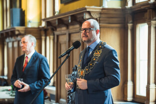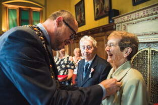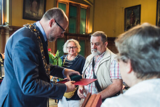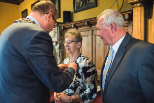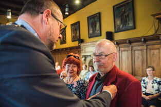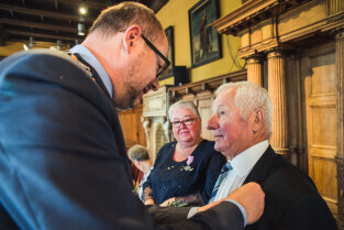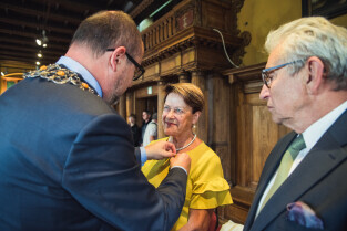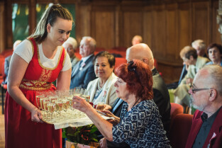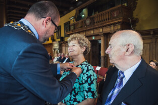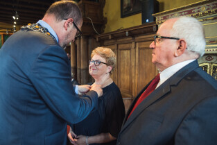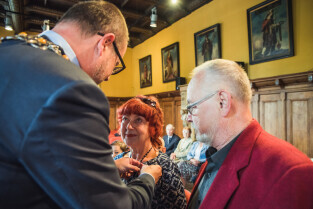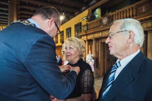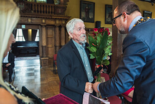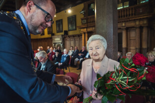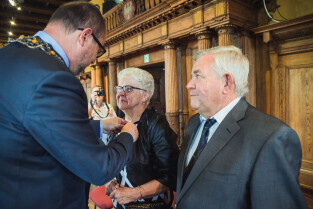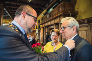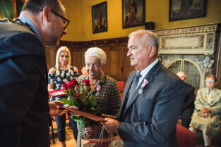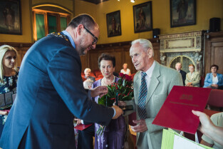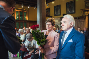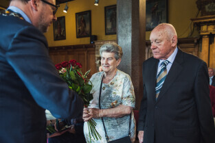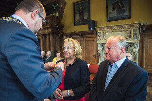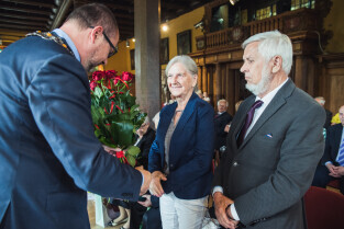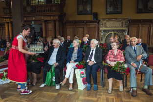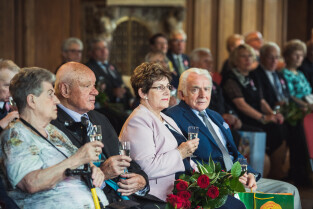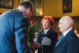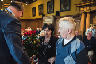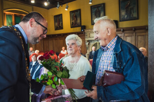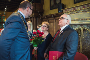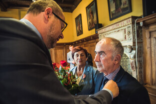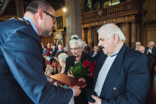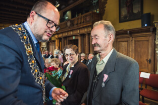 Gdańsk, Ratusz Staromiejski ul. Korzenna. Jubileusz Par Małżeńskich - "Złote Gody", podczas których Prezydent Gdańska, Paweł Adamowicz wręczył medale za długoletnie pożycie małżeńskie