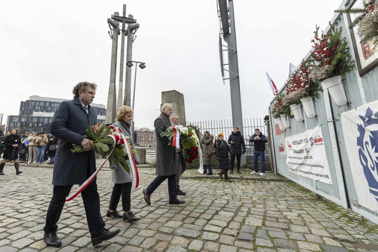 Gdańsk. Złożenie kwiatów i zniczy w 44. rocznicę stanu wojennego.