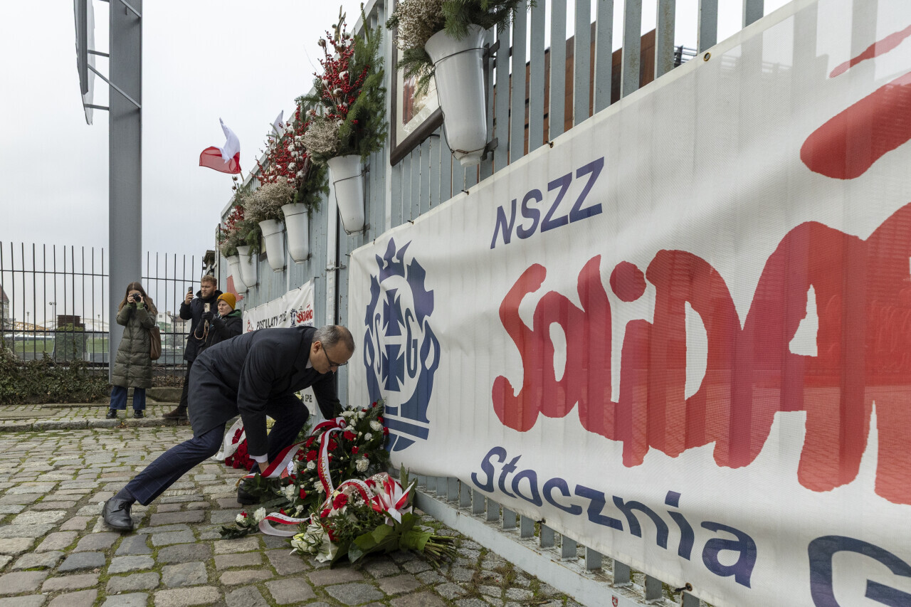Gdańsk. Złożenie kwiatów i zniczy w 44. rocznicę stanu wojennego.