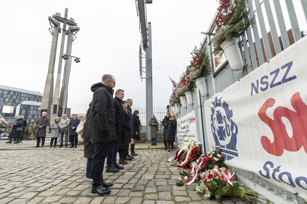 Gdańsk. Złożenie kwiatów i zniczy w 44. rocznicę stanu wojennego.