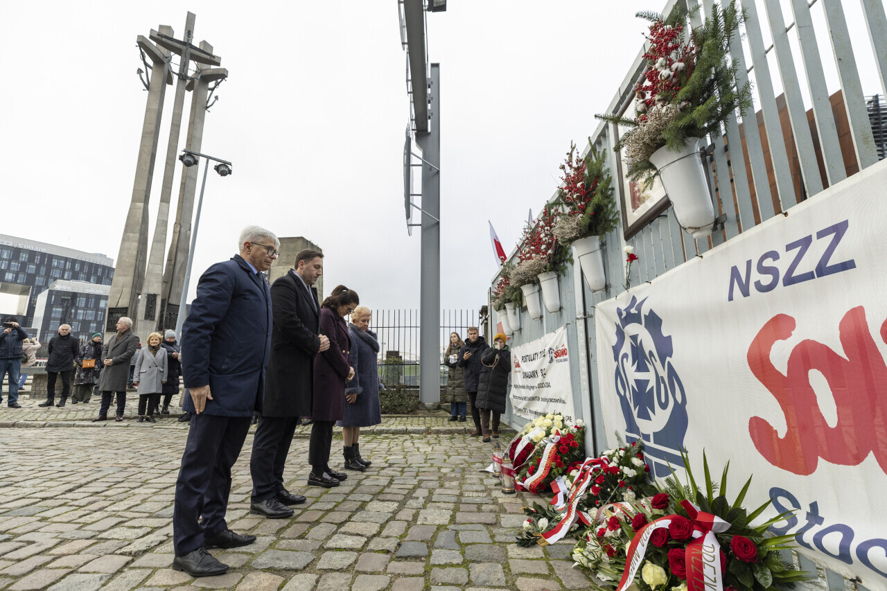 Gdańsk. Złożenie kwiatów i zniczy w 44. rocznicę stanu wojennego.