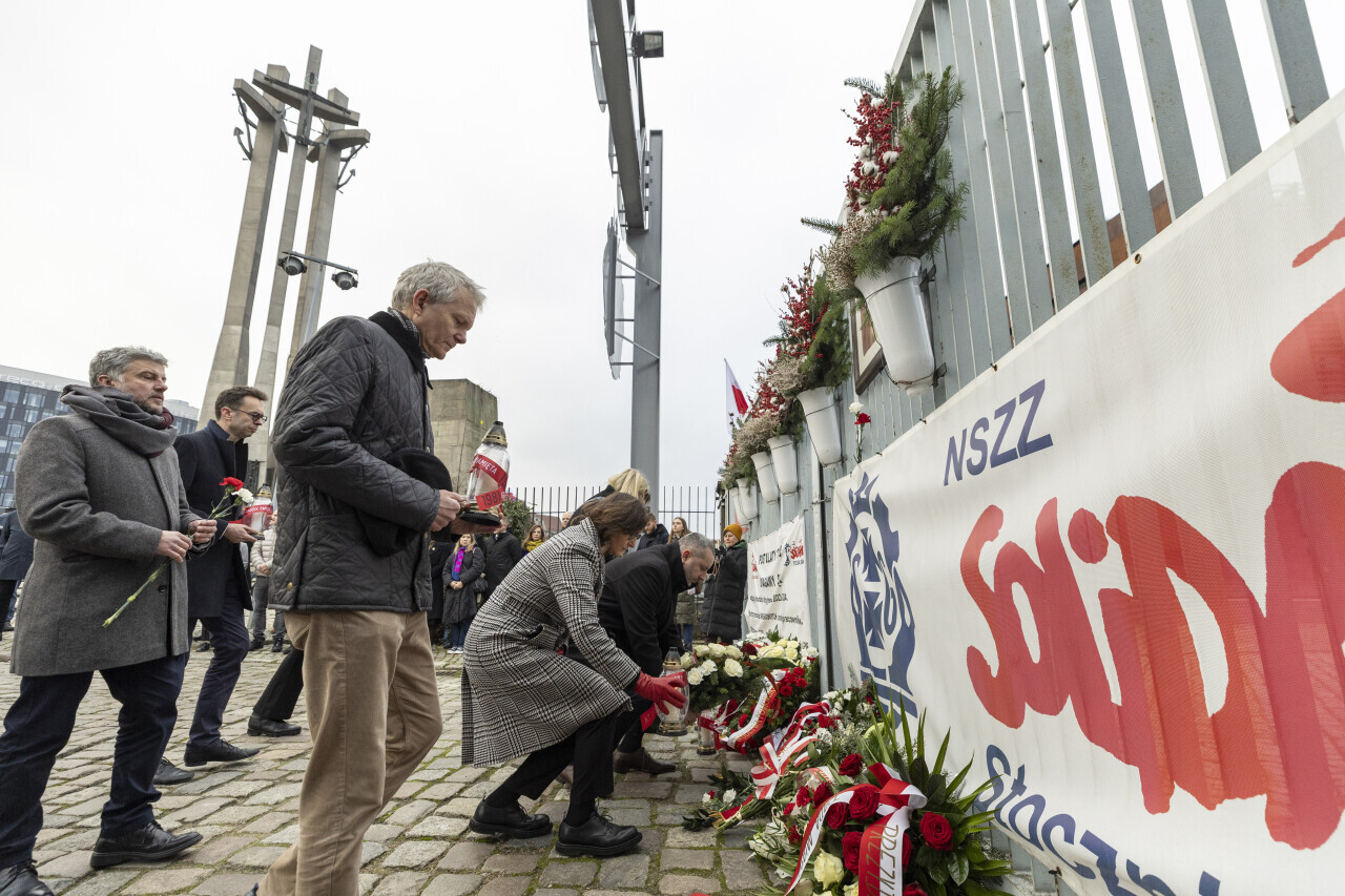 Gdańsk. Złożenie kwiatów i zniczy w 44. rocznicę stanu wojennego.