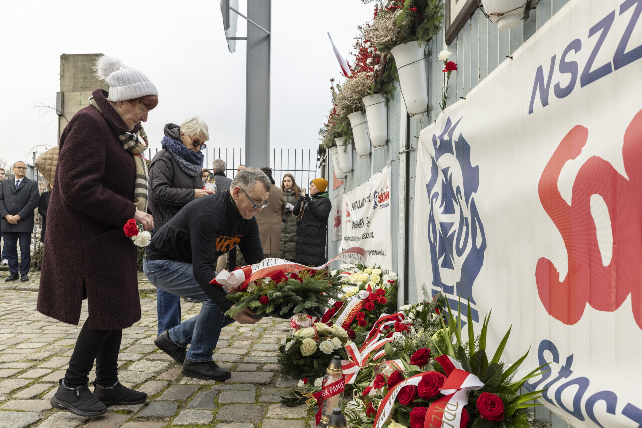 Gdańsk. Złożenie kwiatów i zniczy w 44. rocznicę stanu wojennego.