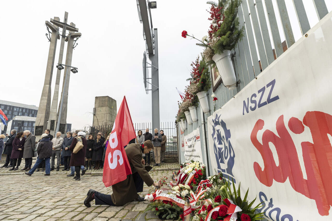 Gdańsk. Złożenie kwiatów i zniczy w 44. rocznicę stanu wojennego.