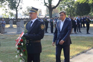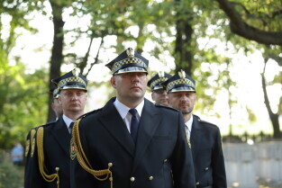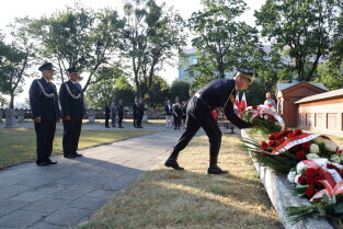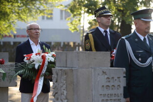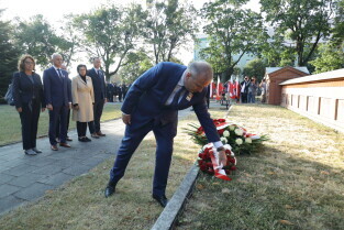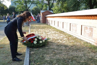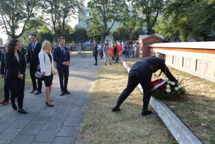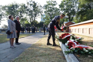 Gdańsk. Złożenie kwiatów na grobowcu Obrońców Poczty Polskiej.