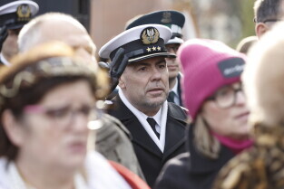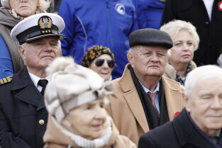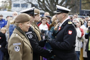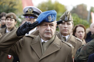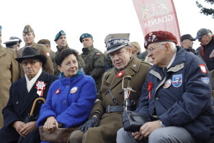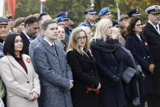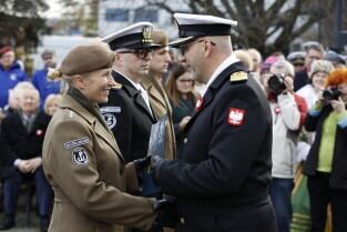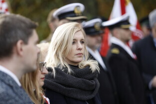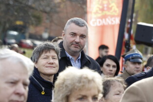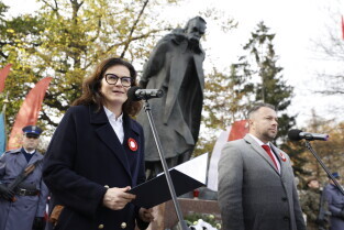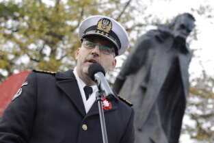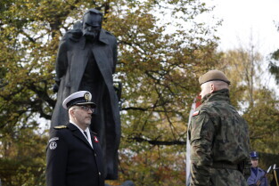 Gdańsk. Złożenie kwiatów przy pomniku marszałka Józefa Piłsudskiego.