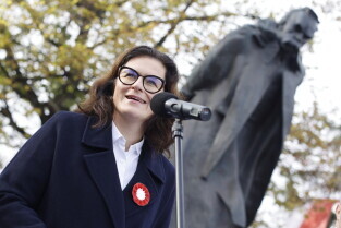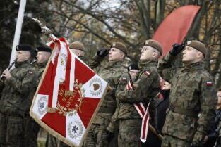 Złożenie kwiatów przy pomniku marszałka Józefa Piłsudskiego