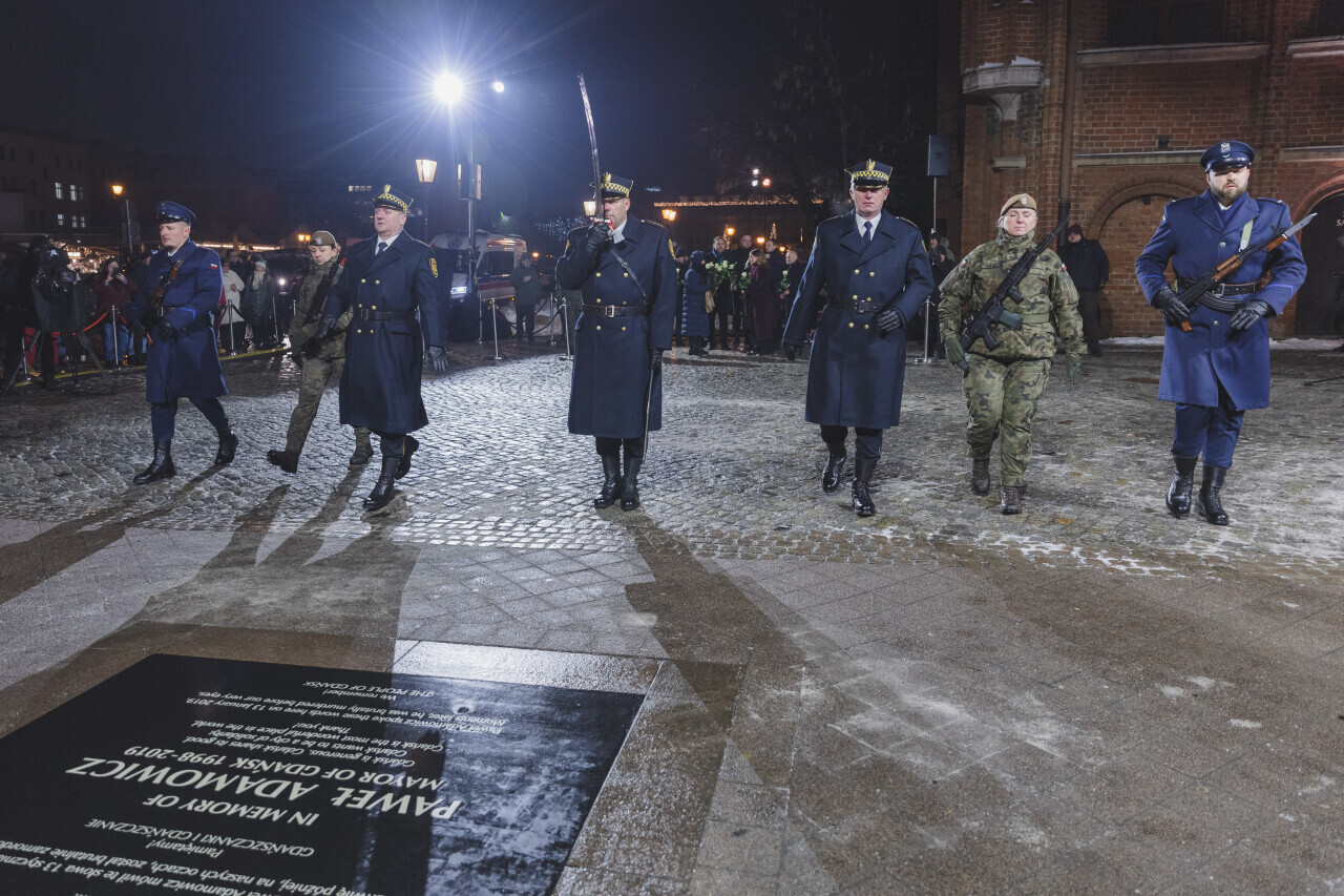 Gdańsk, pamiątkowa tablica. Złożenie kwiatów w 7. rocznicę zamachu na Pawła Adamowicza