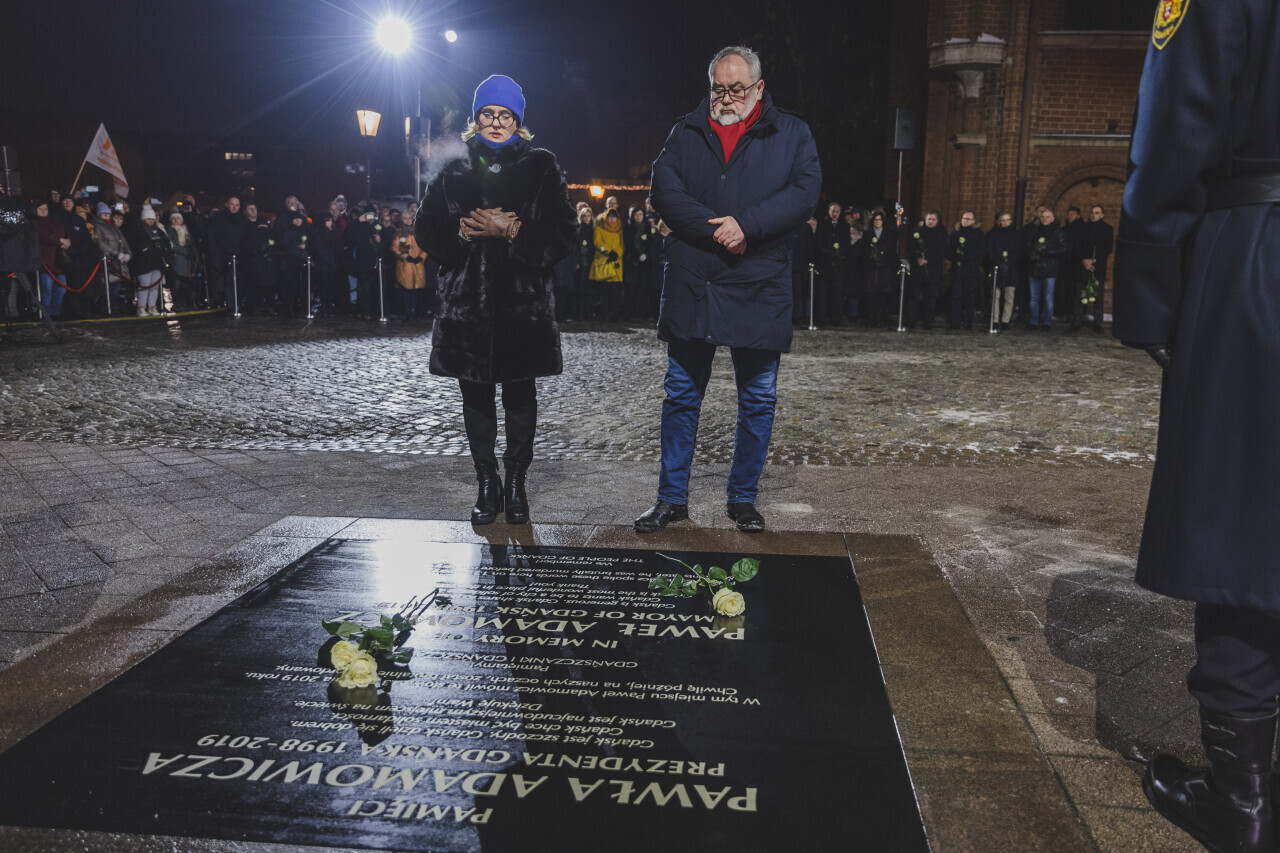 Gdańsk, pamiątkowa tablica. Złożenie kwiatów w 7. rocznicę zamachu na Pawła Adamowicza