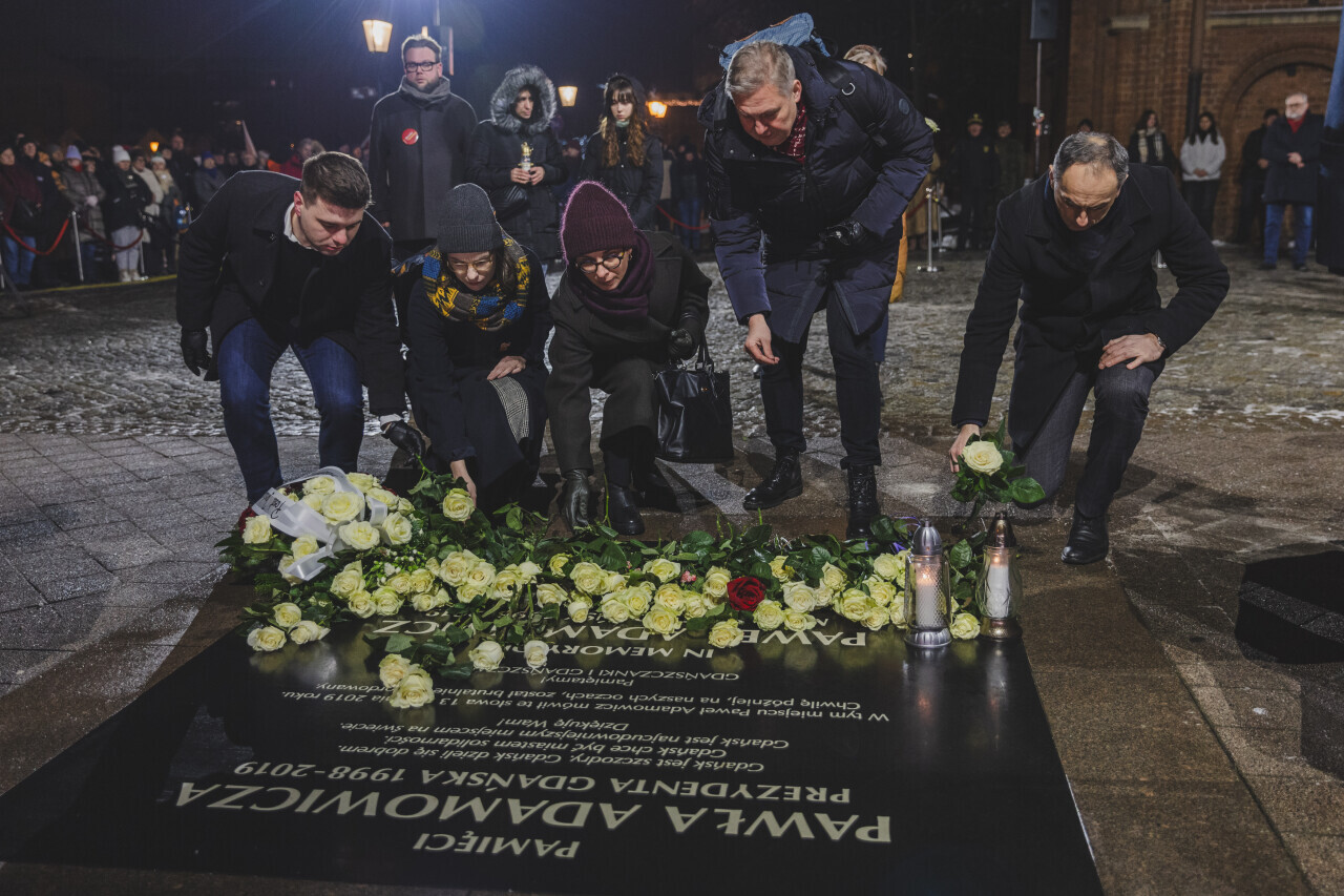 Gdańsk, pamiątkowa tablica. Złożenie kwiatów w 7. rocznicę zamachu na Pawła Adamowicza