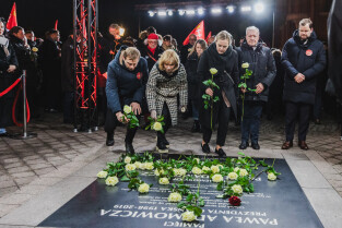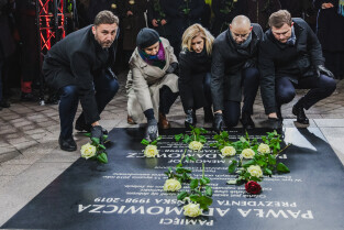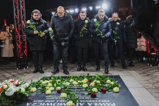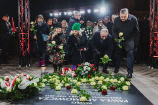 Gdańsk. Złożono kwiaty na tablicy upamiętniającej Pawła Adamowicza w 6. rocznicę zamachu