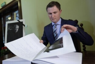 Gdańsk Budynek Rady Miasta. Zmarł Abp Tadeusz Gocłowski - Wpisy do księgi kondolencyjnej. Nz Wiceprezydent Gdańska Piotr Grzelak.