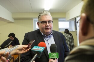 Urząd Miejski w Gdańsku. Konferencja prasowa poświęcona planowanym zmianom w sieci szkół i placówek oświatowych w Gdańsku. Nz. Z-ca Prezydenta Gdańska Piotr Kowalczuk