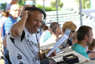 Gdańsk. Żużel, Zdunek Wybrzeże Gdańsk - Arged Malesa TŻ Ostrovia Ostrów Wielkopolski. Nz. Dziennikarz Włodzimierz Mechnikowski.