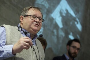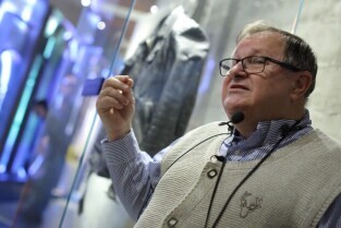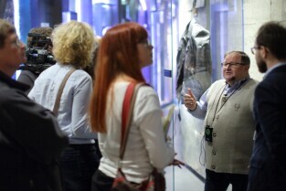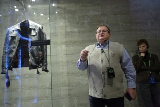 Gdańsk. Zwiedzanie subiektywne wystawy stałej ECS "Śladami Dwóch Polskich Grudniów". Nz. Kazimierz Koźmiński-Szwagier zabitego w Grudniu ‘70 Ludwika Piernickiego.