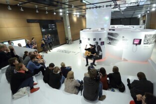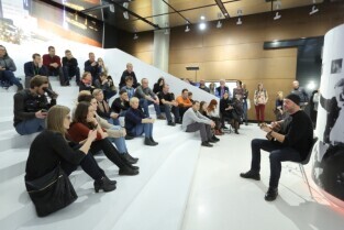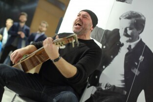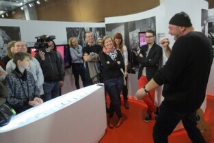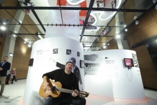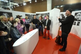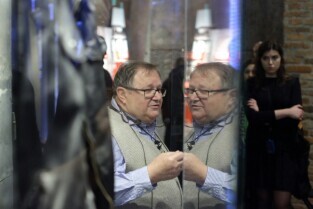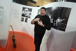 Gdańsk. Zwiedzanie subiektywne wystawy stałej ECS "Śladami Dwóch Polskich Grudniów". Nz. Tomasz Budzyński-Muzyk, kompozytor, malarz i poeta.