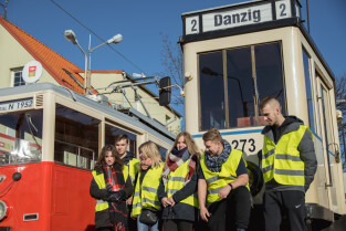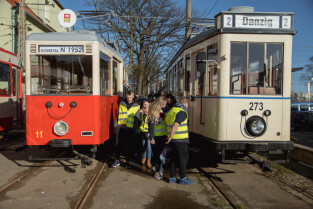 Gdańsk, ul. Wita Stwosza. Zwycięzcy licytacji WOŚP z Krakowa zwiedzają zajezdnię GAiT