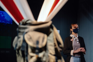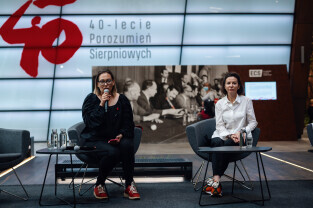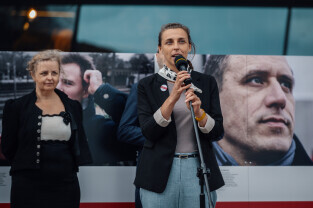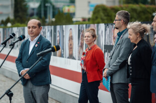 Żywie Biełaruś! Niech Żyje Białoruś! Wernisaż wystawy w pierwszą rocznicę sfałszowanych przez reżim Aleksandra Łukaszenki wyborów prezydenckich na Białorusi. Gdańsk, Europejskie Centrum Solidarności. Nz. zastępczyni prezydent Gdańska Monika Chabior