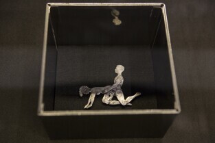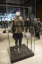 Wystawa czasowa '45. Koniec wojny w 45 eksponatach. Gdańsk, Europejskie Centrum Solidarności. Nz. figurka stworzona przez radzieckiego żołnierza
