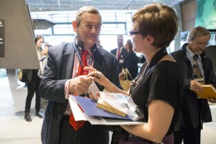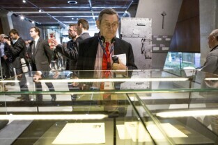 Wystawa czasowa '45. Koniec wojny w 45 eksponatach. Gdańsk, Europejskie Centrum Solidarności. Nz. historyk prof. Norman Davies