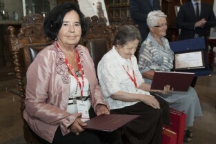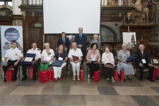 "Gdańska debata o starości" - konferencja poświęcona działaniom na rzecz seniorów oraz sytuacji demograficznej w mieście. Gdańsk, Dwór Artusa. Nz. laureaci nagród w konkursie dla najaktywniejszych seniorów