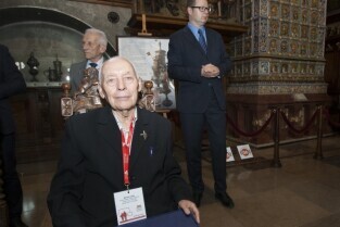 "Gdańska debata o starości" - konferencja poświęcona działaniom na rzecz seniorów oraz sytuacji demograficznej w mieście. Gdańsk, Dwór Artusa. Nz. laureat w kategorii "Aktywny Senior" Marian Całko