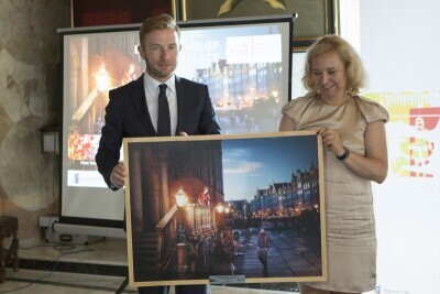 Konferencja prasowa poświęcona kampanii Polskiej Organizacji Turystycznej "Bajowy urlop w Polsce". Gdańsk, Ratusz Głównego Miasta