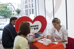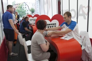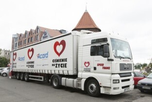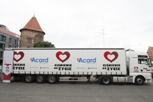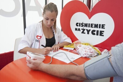 Gdańsk, Targ Rybny. Akcja "Ciśnienie na życie", w ramach której w specjalnej ciężarówce można zmierzyć ciśnienie krwi oraz zasięgnąć porad profilaktyki chorób układu naczyniowo-sercowego