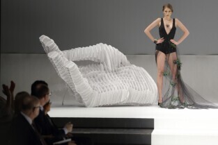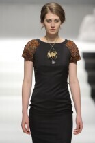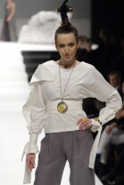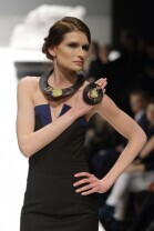 Gdańsk. Gdański Teatr Szekspirowski. Gala Bursztynu i Mody "Amber Look". Nz. Wręczenie Nagrody Bursztynowej Annelise Mercier.