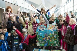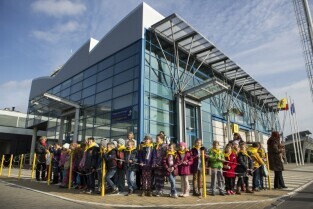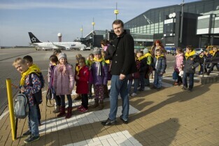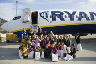 Laureaci konkursu Ryanair "Marzenia uskrzydlają" - uczniowie gdańskich szkół, podczas zwiedzania Portu Lotniczego Gdańsk im. Lecha Wałęsy oraz lotu widokowego na Pomorzem