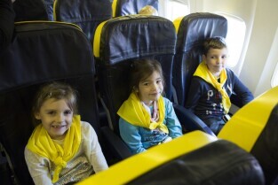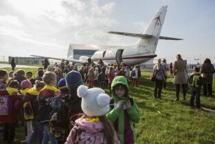 Laureaci konkursu Ryanair "Marzenia uskrzydlają" - uczniowie gdańskich szkół, podczas zwiedzania Portu Lotniczego Gdańsk im. Lecha Wałęsy oraz lotu widokowego na Pomorzem. Nz. Jastarnia