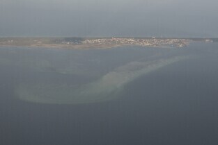Laureaci konkursu Ryanair "Marzenia uskrzydlają" - uczniowie gdańskich szkół, podczas zwiedzania Portu Lotniczego Gdańsk im. Lecha Wałęsy oraz lotu widokowego na Pomorzem. Nz. Martwa Wisła, terminal rudowy i terminal kontenerowy DCT