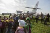 Laureaci konkursu Ryanair "Marzenia uskrzydlają" - uczniowie gdańskich szkół, podczas zwiedzania Portu Lotniczego Gdańsk im. Lecha Wałęsy oraz lotu widokowego na Pomorzem. Nz. Prezydent Gdańska Paweł Adamowicz
