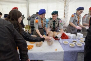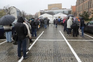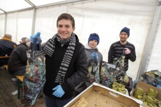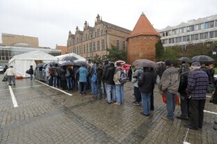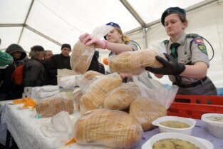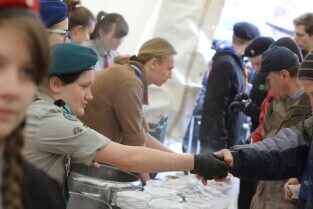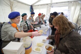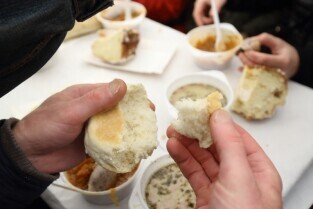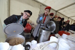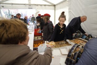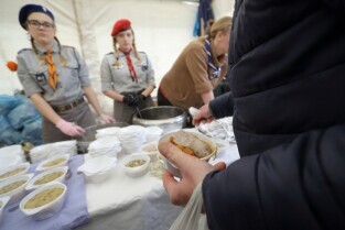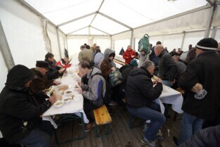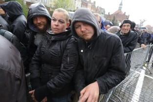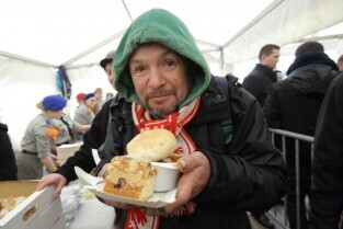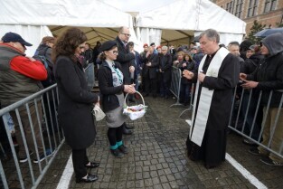 Gdańsk. Święta Wielkanocne. Śniadanie dla potrzebujących na Targu Węglowym.