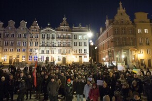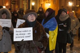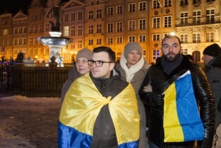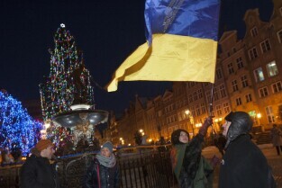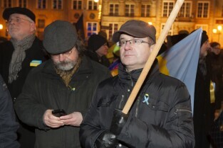 Gdańsk, Długi Targ. "Solidarni z Ukrainą" - wiec poparcia dla demonstrującej opozycji na Ukrainie