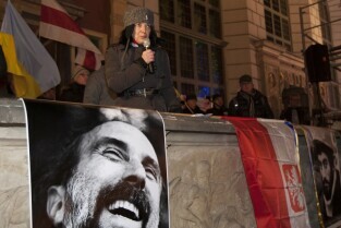 Gdańsk, Długi Targ. "Solidarni z Ukrainą" - wiec poparcia dla demonstrującej opozycji na Ukrainie. Nz. Z-ca Prezydenta Gdańska Maciej Lisicki