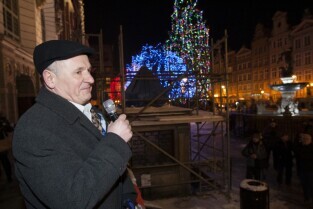 Gdańsk, Długi Targ. "Solidarni z Ukrainą" - wiec poparcia dla demonstrującej opozycji na Ukrainie. Nz. Zbigniew Bujak