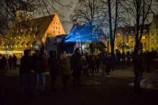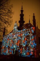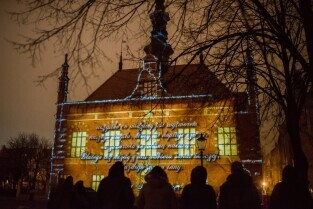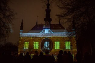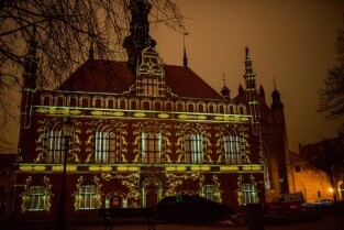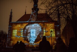 Video Mapping na Ratuszu Staromiejskim, czyli trójwymiarowy pokaz łączący światło, obraz i dźwięk. 5-minutowe projekcje „Śladami Gdańskiej Nauki” przedstawiały historię gdańskich naukowców.