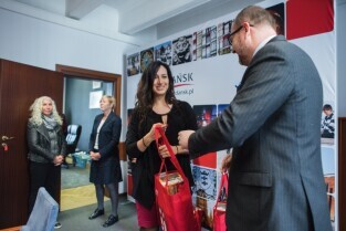 Gdańsk. Urząd Miejski, ul. Nowe Ogrody. „ZaKOTani w Gdańsku” – wręczenie nagród. Nagrody wręczył Prezydent Gdańska, Paweł Adamowicz. Nz Katarzyna Lubańska