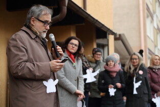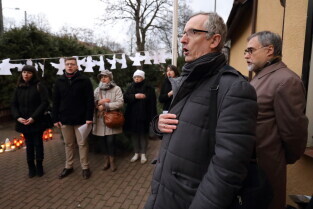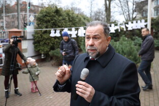 Gdańsk. Piąta rocznica tragicznych wydarzeń na Majdanie. Na terenie Konsulatu w Gdańsku, odbyła się akcja „Anioły Pamięci” ku czci bohaterów „Niebiańskiej Setki” którzy zostali zabici. Nz. Konsul generalny Ukrainy w Gdańsku Lew Zacharczyszyn.